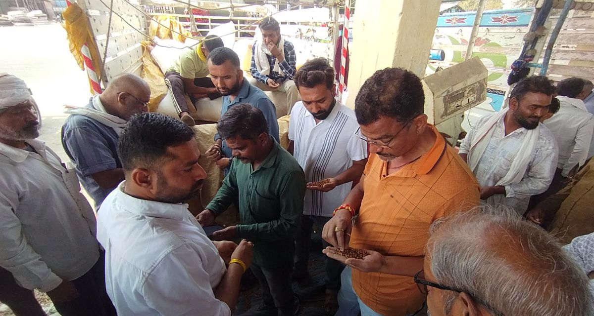 Cover photo - Farmers showing chickpeas to the traders in the market (Photo - Amit Bhatore, 101Reporters)