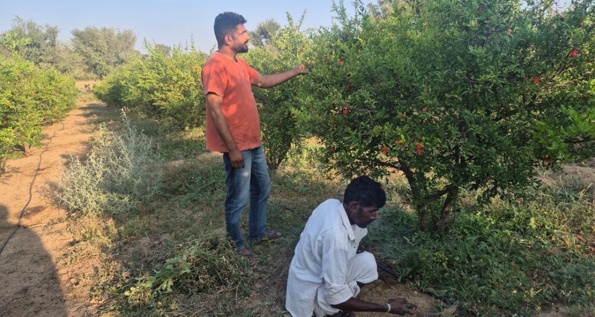 Small farmers are also finding work on large horticulture farms when their own land remains unsuitable. Jamal, a farmer from Jagsa village in Balotra district, tends 5,000 pomegranate plants on a large landowner’s farm. “My share of the income is four times what my own four hectares could produce,” he said.