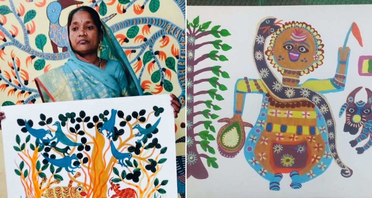 Amar told 101Reporters that after losing his grandfather and father early, it was his grandmother Jodhaiya Bai and mother Sakun Bai who supported the family by cutting wood, working as labourers and collecting tendu leaves. “Since 2007-08, I have seen their struggle,” he said. “Alongside this labour, slowly my grandmother, mother, and I began learning painting under Guru Ashish.”