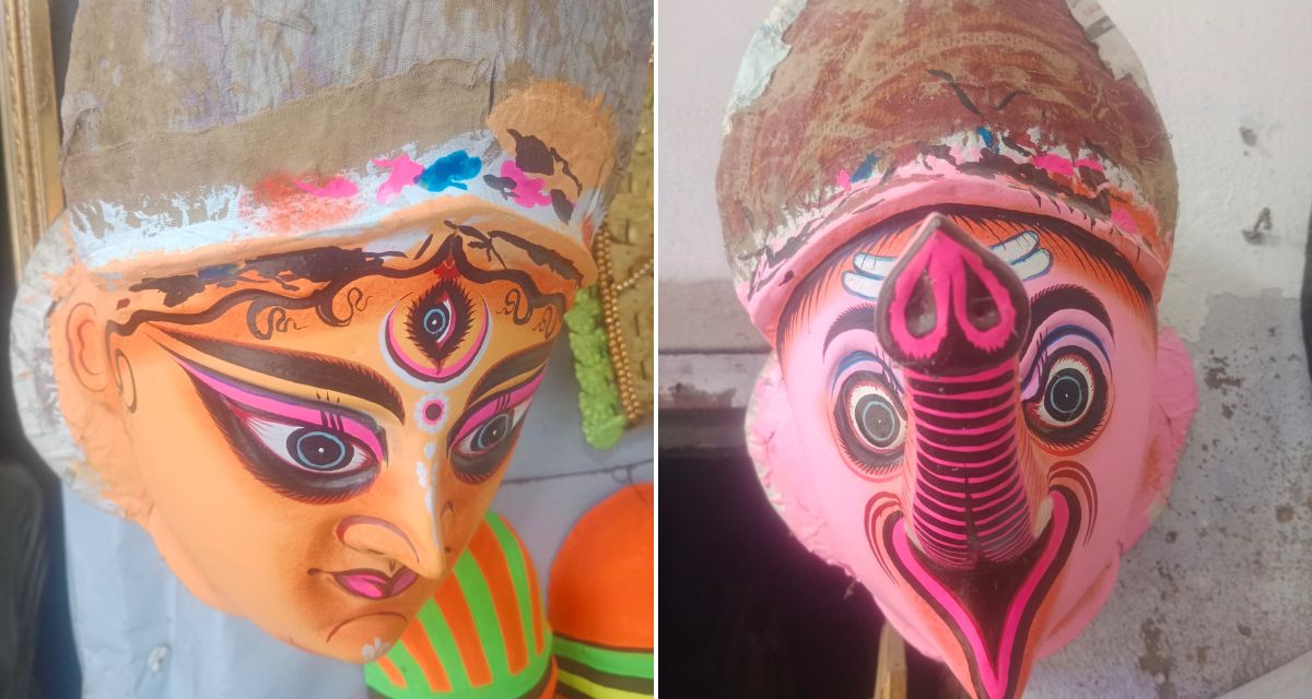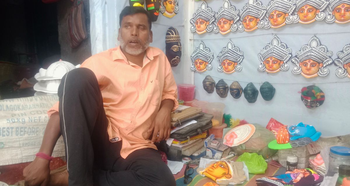One of them is Bhim Sutradhar (49), a mask-maker who also crafts large idols across states. “We have been going outside for idol-making for 25 years,” he said. “More than 300 artists from this village travel for work.”
