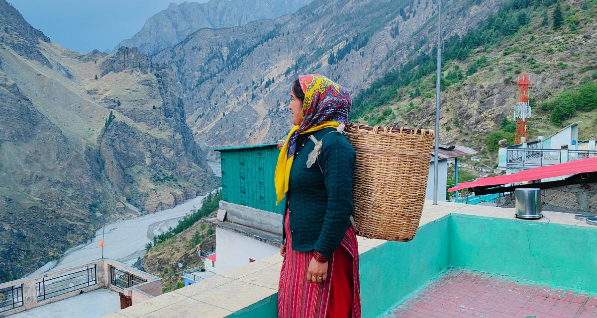 In Ghinghran village, tin roofs rattled under rain mixed with hail during this reporter’s April visit, and it poured almost daily. As she packed household items, Gayatri Devi, wife of village head Molfa, said, “When sudden, intense rain starts in Mana, we fear something bad will happen. Sometimes heavy rain dislodges chunks of the glacier. But whatever happens, we will not leave.”